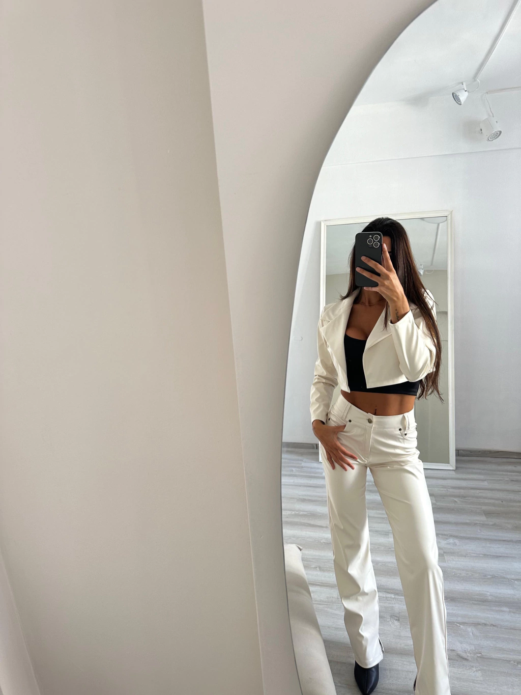 En la foto principal la modelo usa un talle M para que le quede más tiro bajo